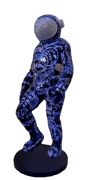 "Frozen With Desire" by Brendan Murphy, created in 2022, stands at 4-feet tall boasting 517 carats of natural, responsibly sourced VS diamonds set pave-style in pure platinum on the spaceman's visor, helmet pods, and suit pods. FWD is one of the most diamond intense pieces in the world, and depicts Brendan's signature Boonji Spaceman character. For the first time in history, this fine-art sculpture will be immortalized on Bitcoin as a 3D ordinal and can be claimed 1:1 through minting a Bitcoin Spaceman.
